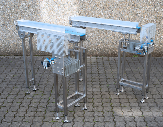 Kleinförderer von Schulz Fördertechnik sind für den präzisen und platzsparenden Transport kleiner Stückgüter konzipiert. Sie eignen sich ideal für kurze Strecken, variable Höhen und enge Maschinenübergaben – z. B. in Montagezellen, Prüfstationen oder Verpackungslinien.